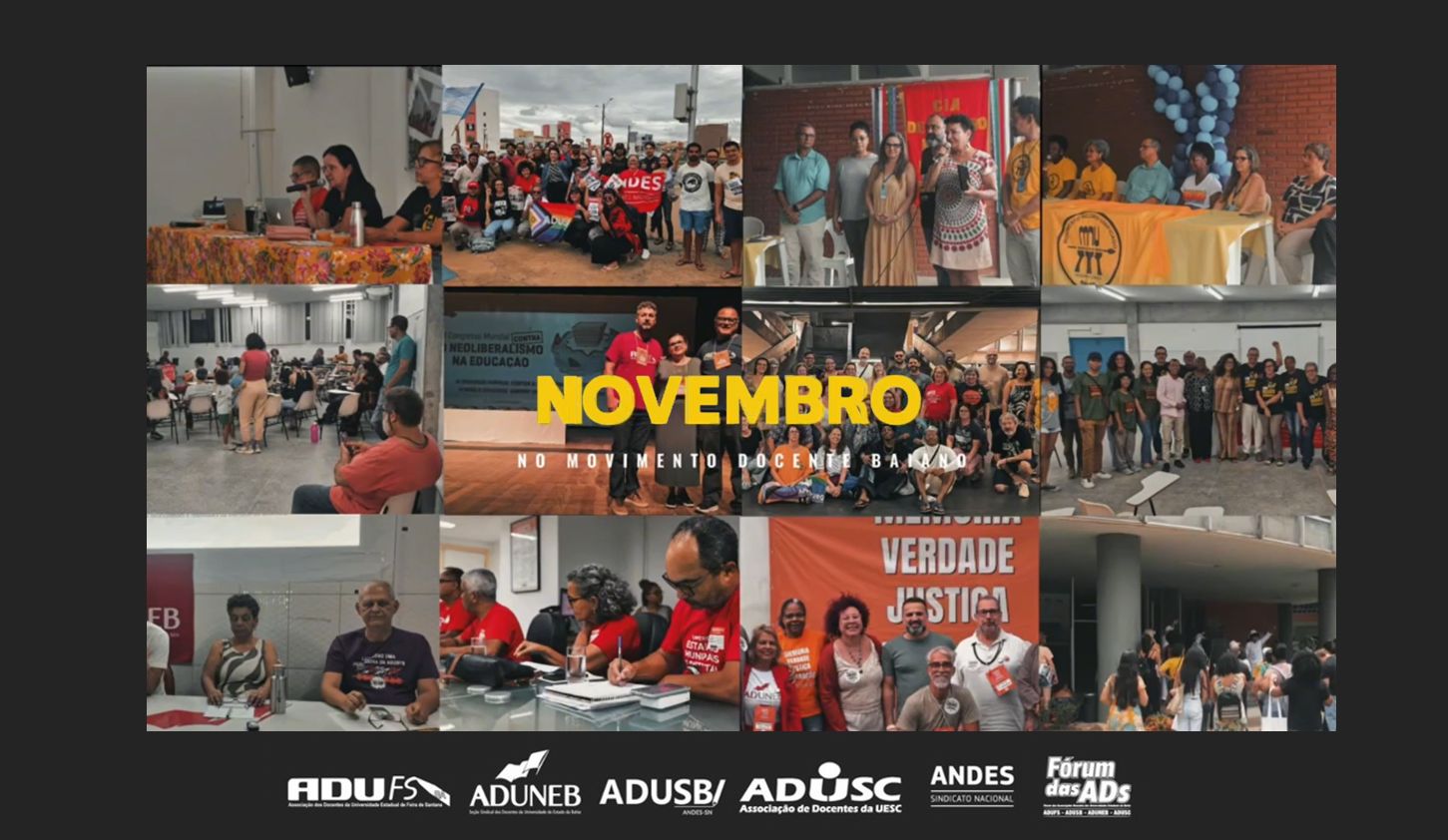 Novembro é um mês marcado pela agenda de luta antirracista e no movimento docente não é diferente. Além da agenda de lutas sobre a questão racial, esse mês nas Associações Docentes também foi marcado por mesa de negociação, assembleias docentes, denúncia aos 60 anos de golpe de 1964, mobilizações contra a escala de trabalho 6x1 e outras resistências. Confira os principais acontecimentos com a retrospectiva abaixo.