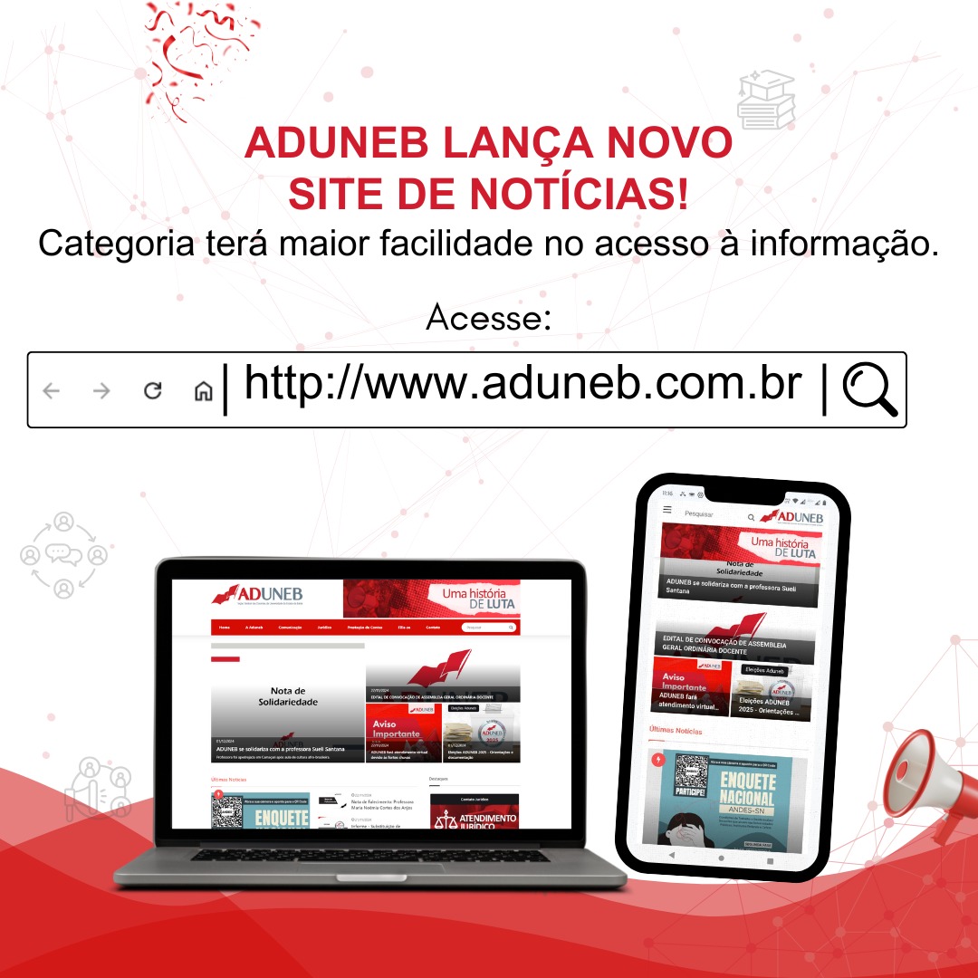 Dezembro começa com uma novidade. No mês em que a ADUNEB completa 43 anos de luta, com o intuito de aproximar ainda mais a Seção Sindical da categoria docente, nesta segunda-feira (02), a entidade coloca no ar um novo e atual site de notícias. Por meio de uma nova interface, os usuários poderão usufruir de uma experiência diferenciada, com uma navegação mais fácil e assertiva.