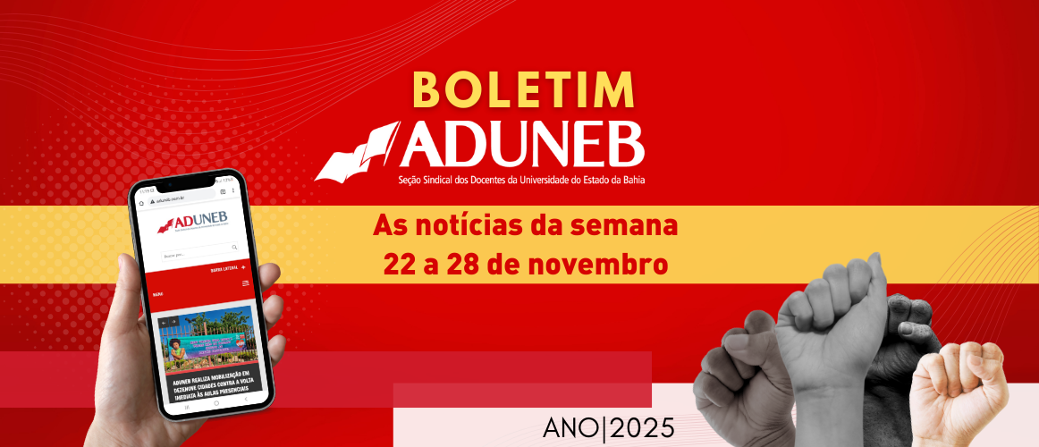 A Coordenação Executiva Colegiada da ADUNEB - SEÇÃO SINDICAL DOS DOCENTES DA UNIVERSIDADE DO ESTADO DA BAHIA, no uso de suas atribuições e de acordo com o que dispõe o seu Estatuto, convoca seus associados para uma ASSEMBLEIA GERAL ORDINÁRIA DOCENTE, a realizar-se no dia 4 de dezembro de 2025 (quinta-feira), Auditório da ADUNEB – Salvador/BA, às 14h, em primeira convocação, e, às 14h30min, em segunda convocação, com qualquer número de sindicalizados presentes.
