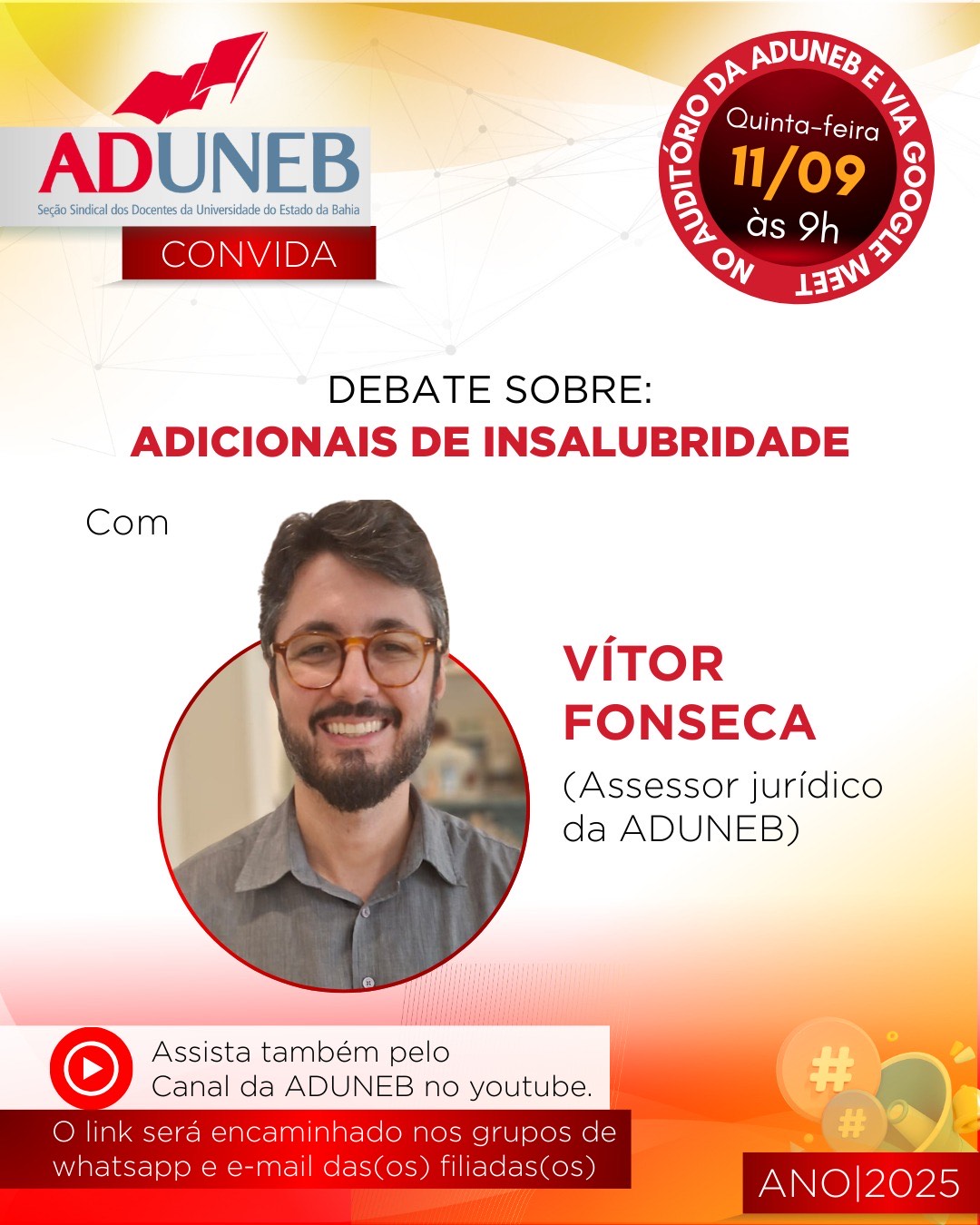 Debate sobre Adicional de Insalubridade, com o assessor jurídico da ADUNEB, Vitor Fonseca.