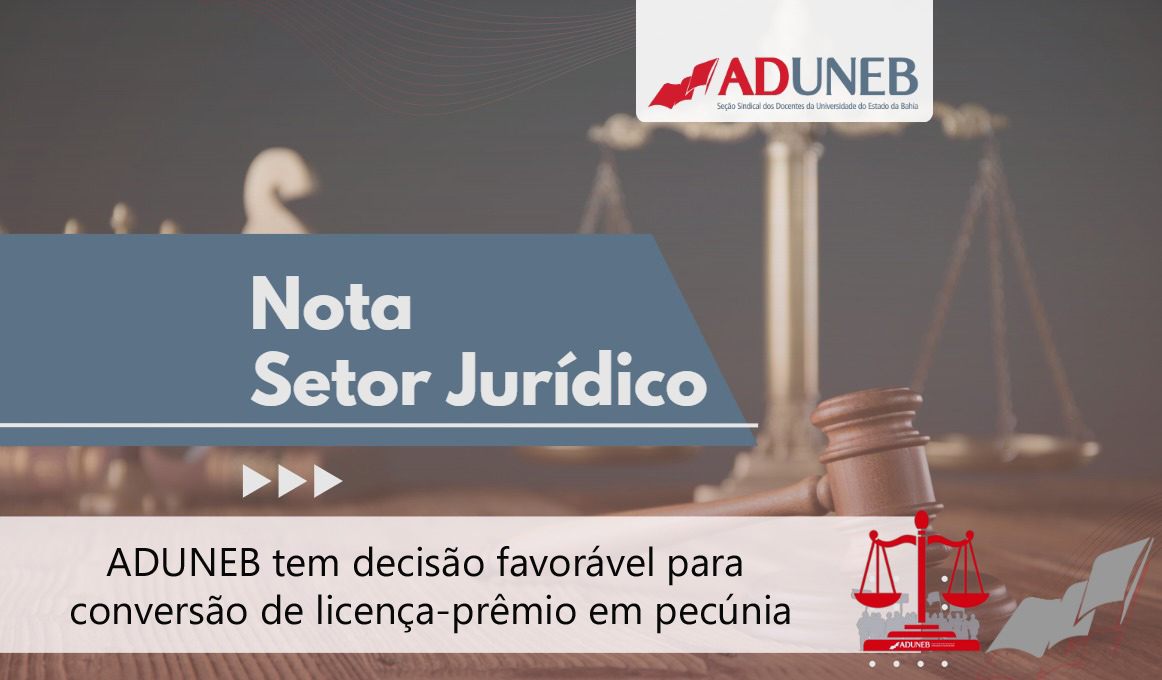 A ADUNEB obteve decisão favorável em primeira instância, em ação judicial individual com pedido de conversão em pecúnia de licença-prêmio. O caso, acompanhado pela assessoria jurídica da seção sindical, é referente a uma docente aposentada. Os autos de nº 8120645-60.2024.8.05.0001 são datados em 12/06/2025.