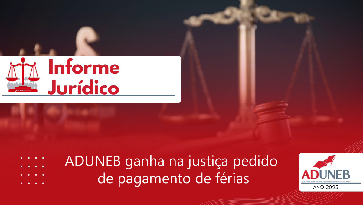 Em mais uma decisão favorável à ADUNEB, a seção sindical obteve êxito em um pedido de pagamento do 1/3 de férias, referente ao processo individual nº 8122024-36.2024.8.05.0001. A sentença, datada de 28/08/2025, está sendo acompanhada pela Assessoria Jurídica.