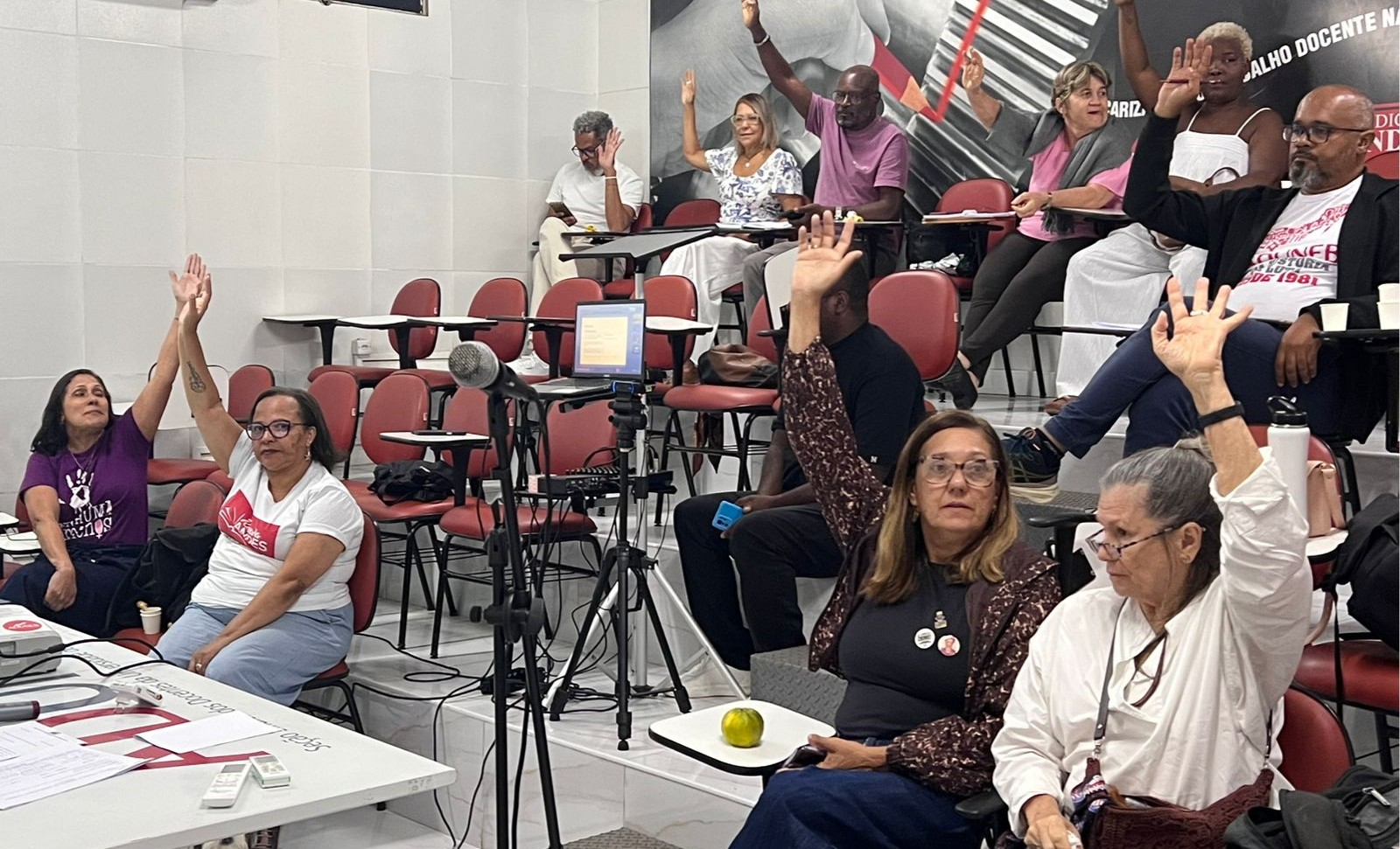 A assembleia geral da ADUNEB que ocorreu nesta sexta-feira (24), elegeu a delegada e observadoras/es para o 69º CONAD que ocorrerá de 3 a 5 de julho, em São Luís (MA), com o tema “Guarnicê a luta pela educação pública na terra da Balaiada: contra o imperialismo e a extrema direita”. A comitiva da ADUNEB terá Karina Sales, Coordenadora Geral da ADUNEB, como delegada e as/os professoras(es) Irenilza Oliveira, Kátia Barbosa, Edson Fernando Oliveira Silva, Maira Portofé, Naira Moura e Sônia Tomazzoni como observadoras/es.