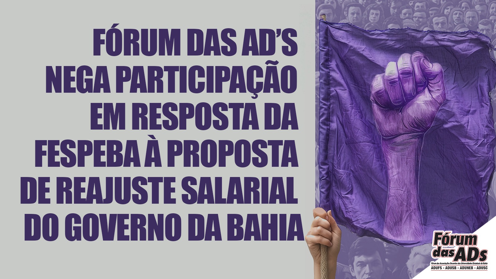 Fórum das ADs nega participação em resposta da FESPEBA à proposta de reajuste salarial
