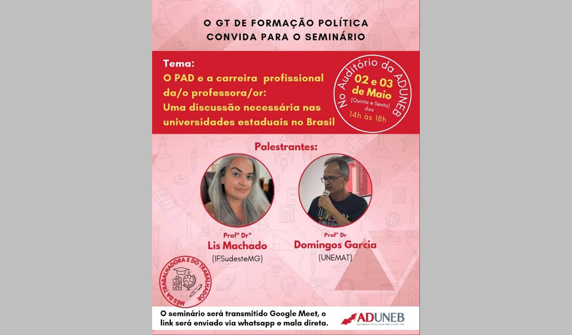 ADUNEB fará seminário sobre PAD e carreira profissional docente