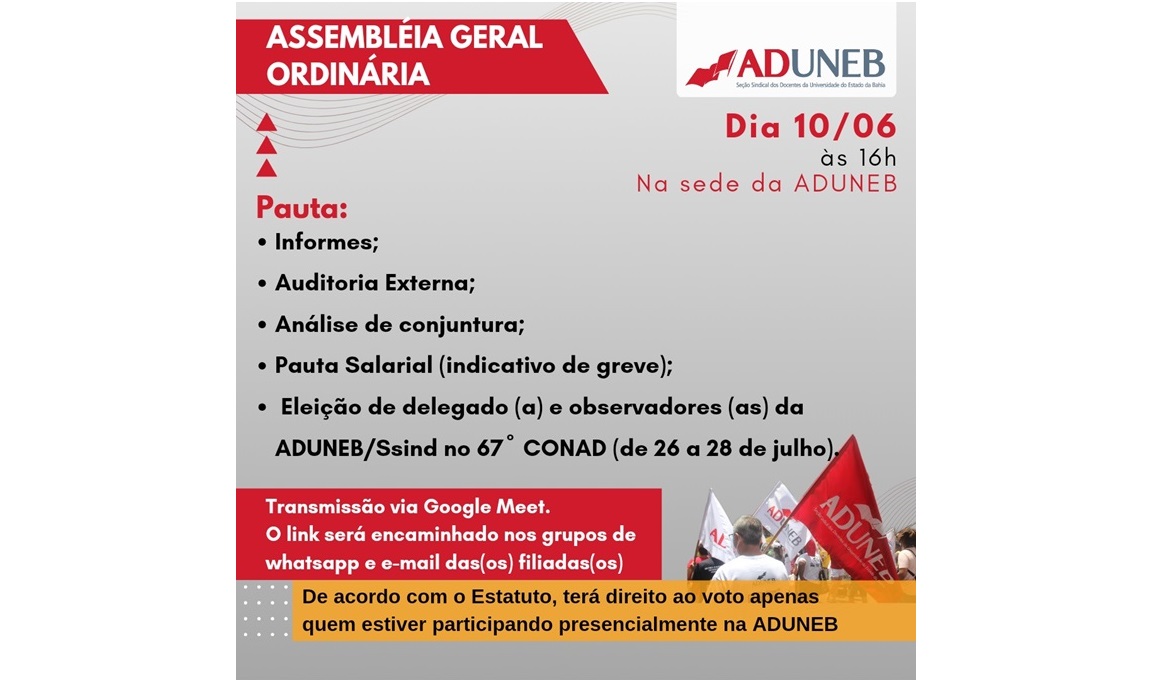 Assembleia da ADUNEB aprova pauta de reivindicações 2026
