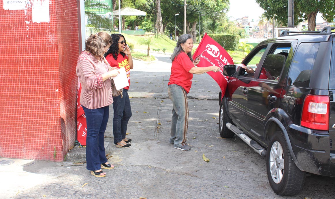 Coordenadoras da ADUNEB na panfletagem